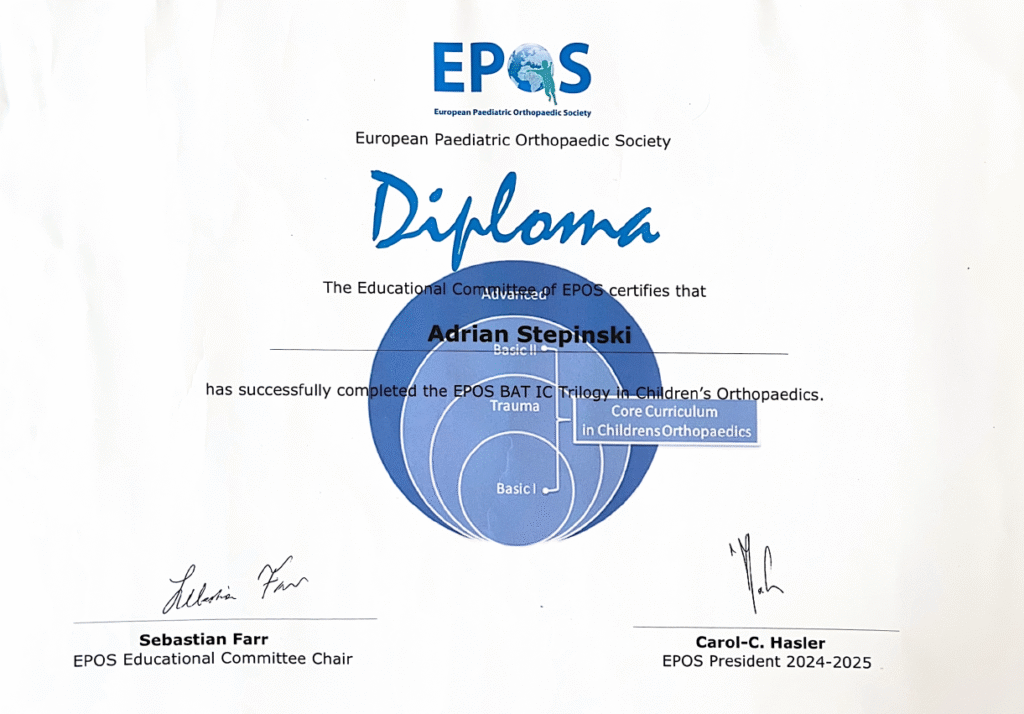 - 7th EPOS BAT INSTRUCTIONAL COURSE TRILOGY – European Pediatric Orthopaedic Society – Speising Hospital Wiedeń (2023).