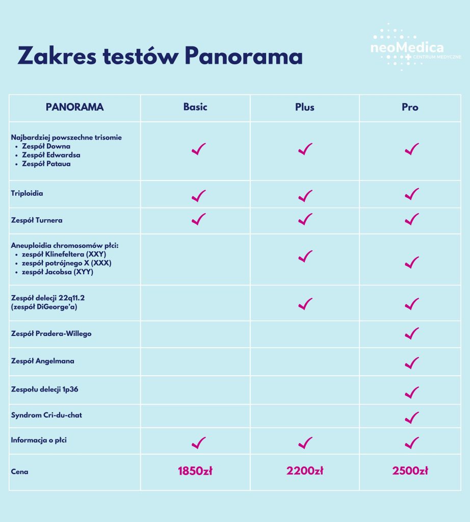 - Panel prenatalny Panorama – chromosomy 13, 18, 21, chromosomy płci; triploidia