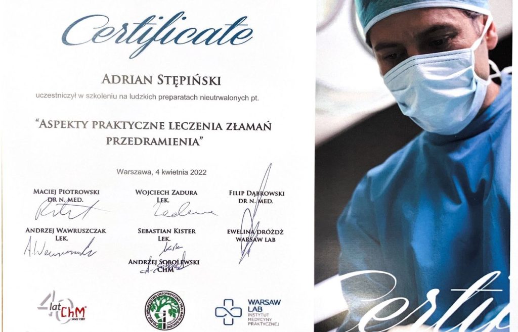 - Warsaw-Lab szkolenie na ludzkich preparatach nieutrwalonych „Aspekty praktyczne leczenia złamań przedramienia” (2022)